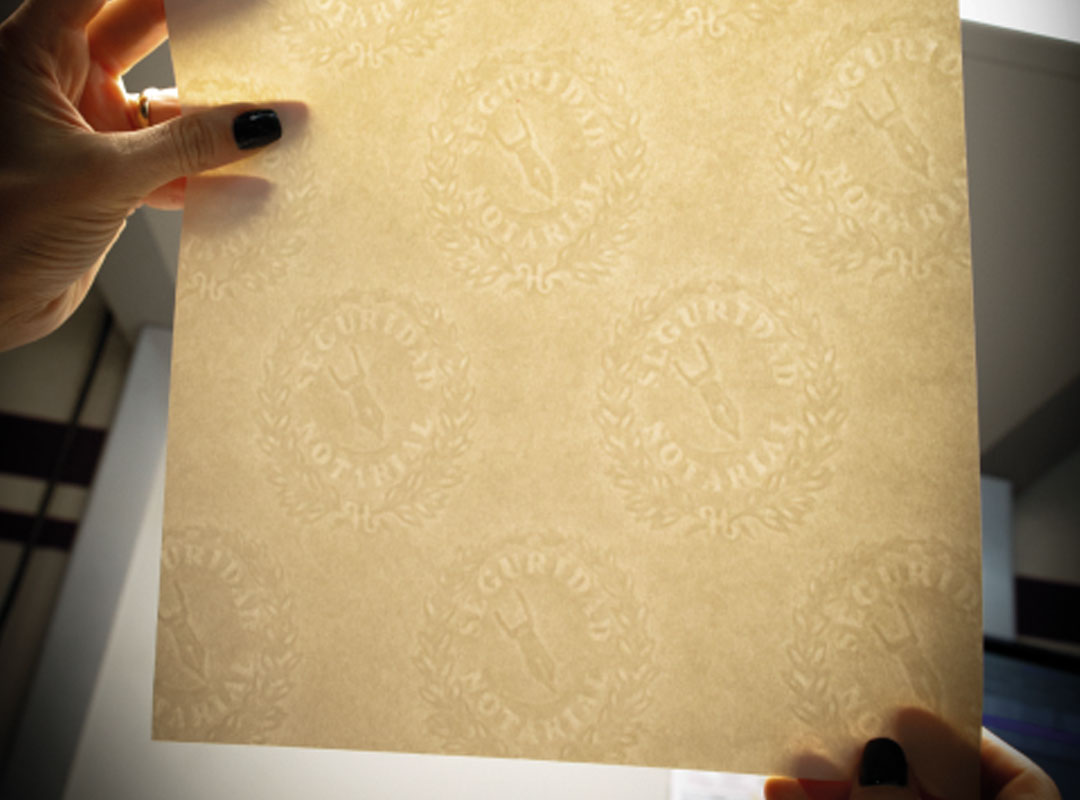 La fabricación de Documentos de Seguridad como: Certificaciones de ingresos, Diplomas universitarios, Fojas notariales, Credenciales, Obleas de certificación, Estampillas, etc.